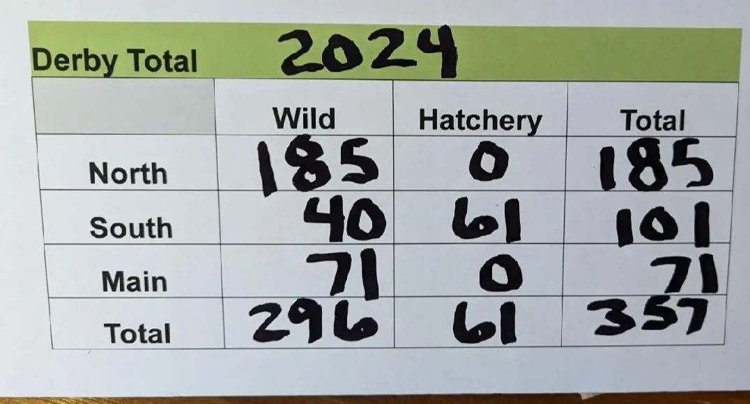 Here is the breakdown of all the winter steelhead caught during the 2024 fish derby. The 2-day fishing derby was excellent this year. 40 derby guides provided 80 anglers both days with a great opportunity to enjoy the winter steelhead fishing for hatchery and wild steelhead On the North Umpqua, 185 wild, 0 hatchery - 185 total On the South Umpqua, 40 wild, 61 hatchery - 101 total On the Main Umpqua, 71 wild, 0 hatchery - 71 total Total fish caught: 296 wild winter steelhead 61 hatchery winter steelhead 357 total winter steelhead