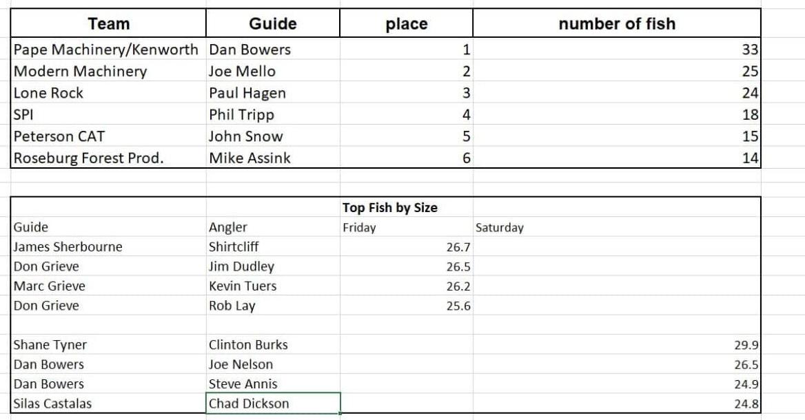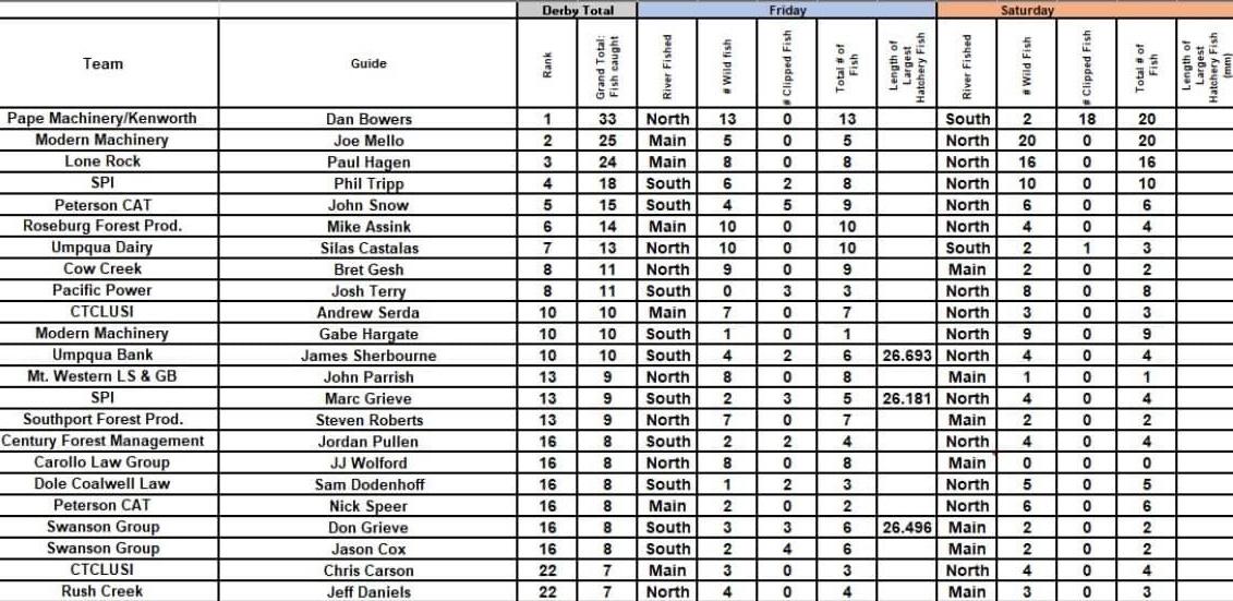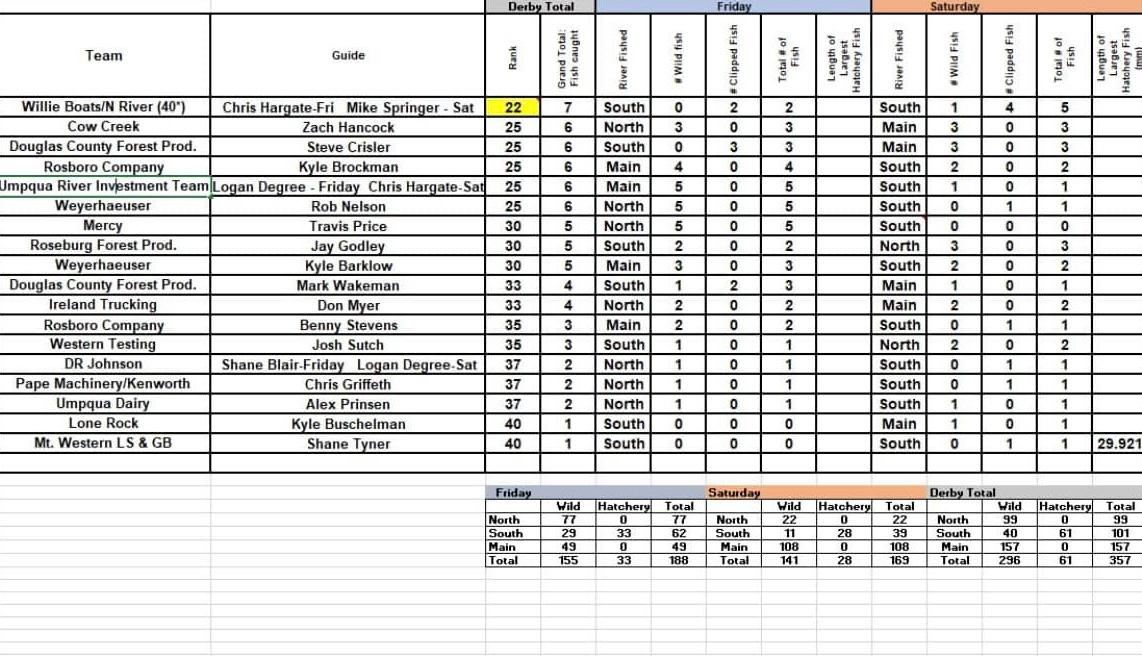 Our final tallies. Congrats not only to our winners but to ALL the teams, guides, sponsors, donors, volunteers, and auction attendees who contribute to our events so we can continue raising money for fishery and wildlife enhancement, restoration projects, & education programs in the Umpqua Basin 🌲