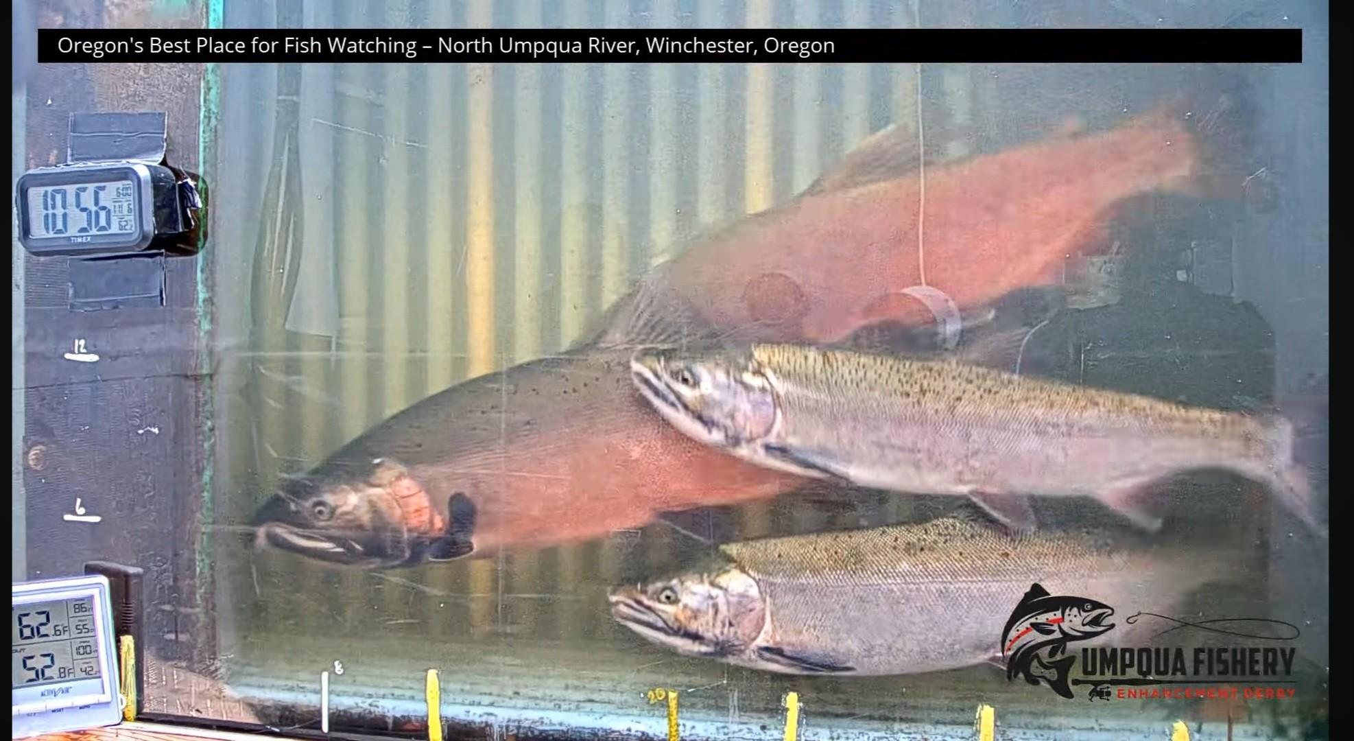 The VideoCam is being enjoyed by many followers every day. And we are tallying the actual fish count to report how many thousands have passed through the fish ladder in just the past few weeks. Flows have ranged from 800 cubic feet per second to over 6,000 cfs and coho have not had any problem moving upstream passed Winchester Dam day or night.