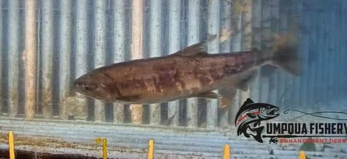 No, it was not Bigfoot swimming through the fish ladder. A chum salmon was recorded headed upstream recently mixed in with the coho and chinook salmon. There is a small population in the lower mainstem Umpqua and Smith River. Rarely migrate this far from the estuary.