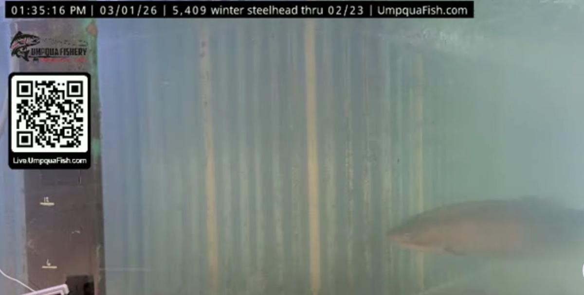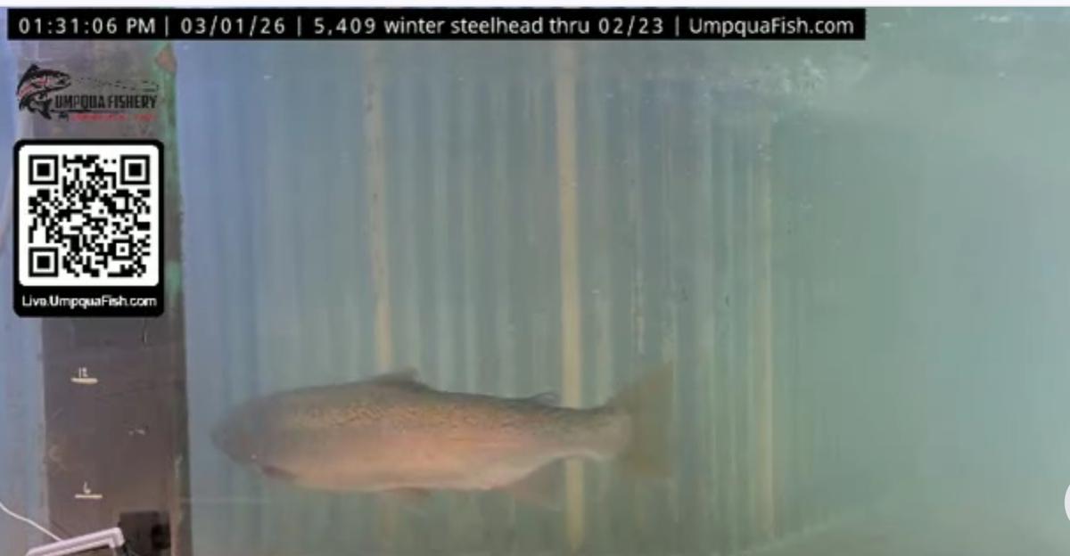 Another great day to watch several hundred winter steelhead move upstream through the fish ladder at Winchester Dam on the North Umpqua River. With almost 500 fish counted on February 10th and more observed yesterday, the 2026 steelhead return is now over 3,500 and not even halfway through the normal run timing for this population. There is no winter steelhead hatchery program for the North Umpqua and only a very small number of fish stray from the South Umpqua River hatchery smolt release.